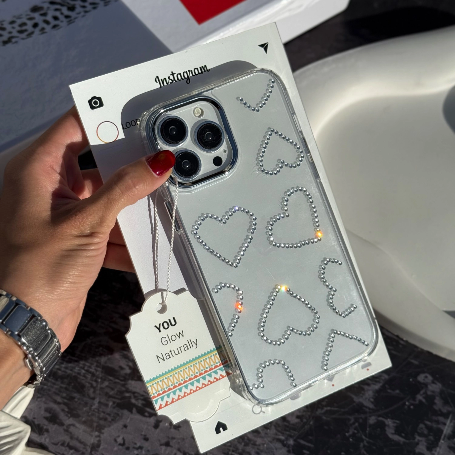قاب شفاف نگین دار قلب